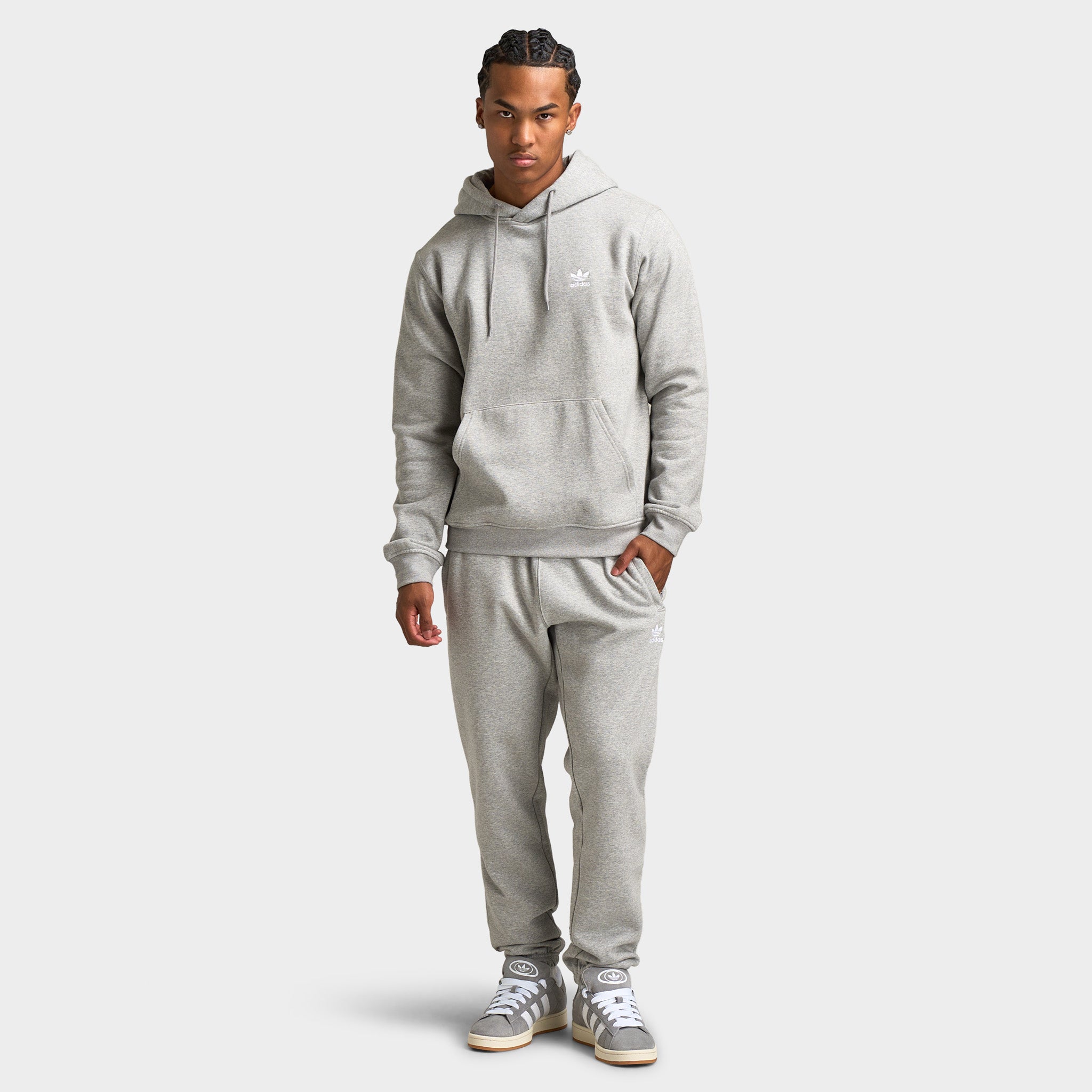 A simple beauty, the adthtidas Originals Trefoil Essentials Pullover Hoodie delivers minimalist style and supreme comfort for the daily grind. It__ designed with a relaxed fit and cut from a soft blend of cotton-poly fleece for unmatched coziness.