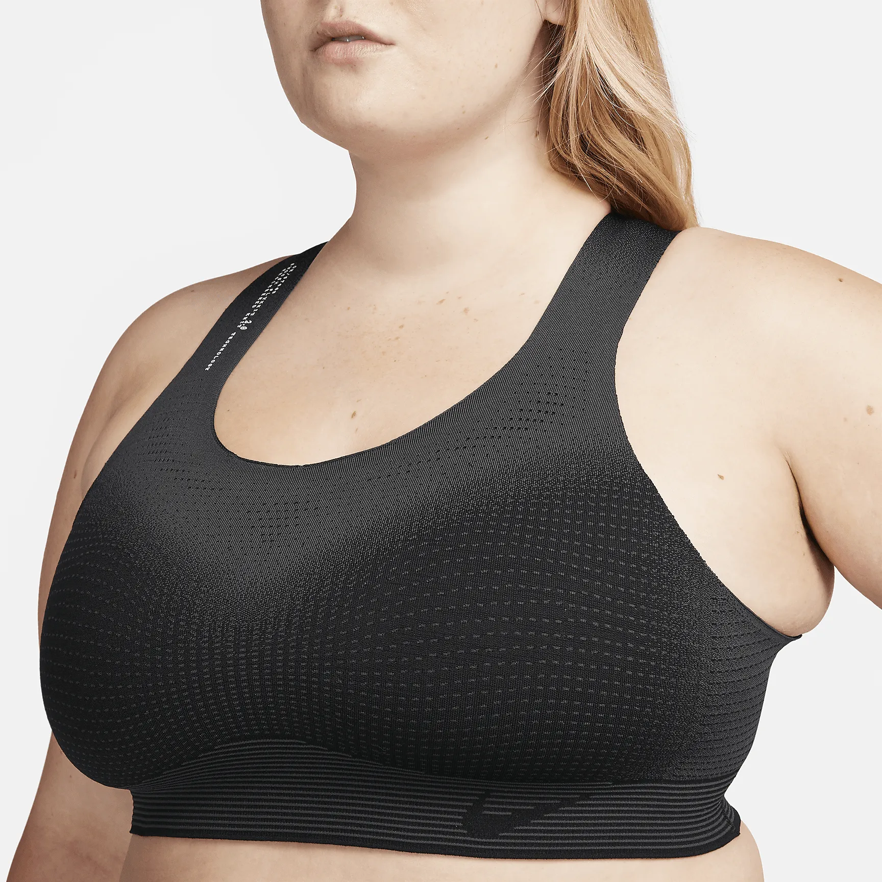 The Swoosh Flyknit Bra is back with an elevated design. With support in all the right places, you'll feel secure through your entire workout. Ultra stretchy fabric on the back makes changing a breeze and the traditional adjustable hook-and-eye clasp lets you find the perfect fit. While smooth, soft covered side seams keep you feeling comfortable, the sweat-wicking tech and perforations give you the ultimate flow, so you can keep pushing through.