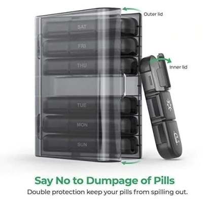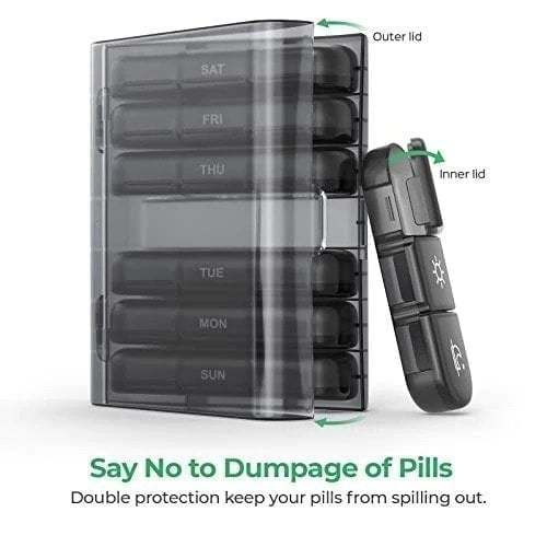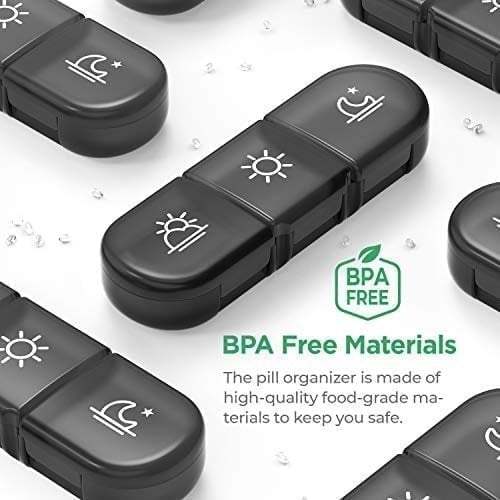 Pill container (morning, noon and night) sort your pills 3 times a day; larger black shell can accommodate 7 independent pill box organizer to plan the pills for a week. Separate pill holder, this pill dispenser has 7 movable vitamin