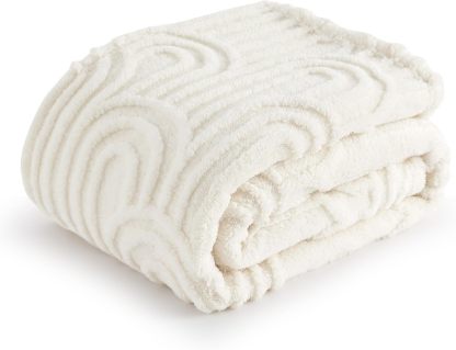 Bedsure Fleece Throw Blanket for Sofa, Cosy Warm Soft Plush Fluffy Blankets for Couch and Bed, Single, White, 130x150 cm