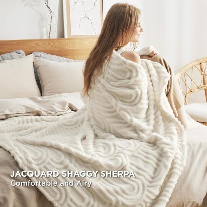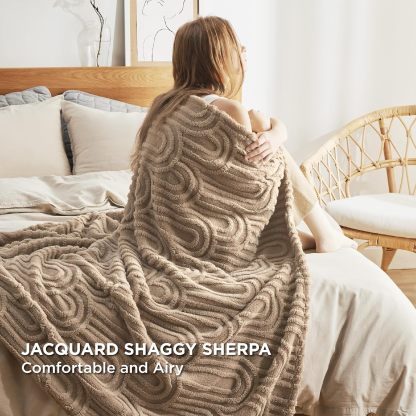 - Warm Yet Lightweight: The Jacquard Shaggy Sherpa Blanket maintains the ideal balance between weight and warmth. Enjoy being cuddled up by this soft and calming blanket whenever you're ready to snuggle up.