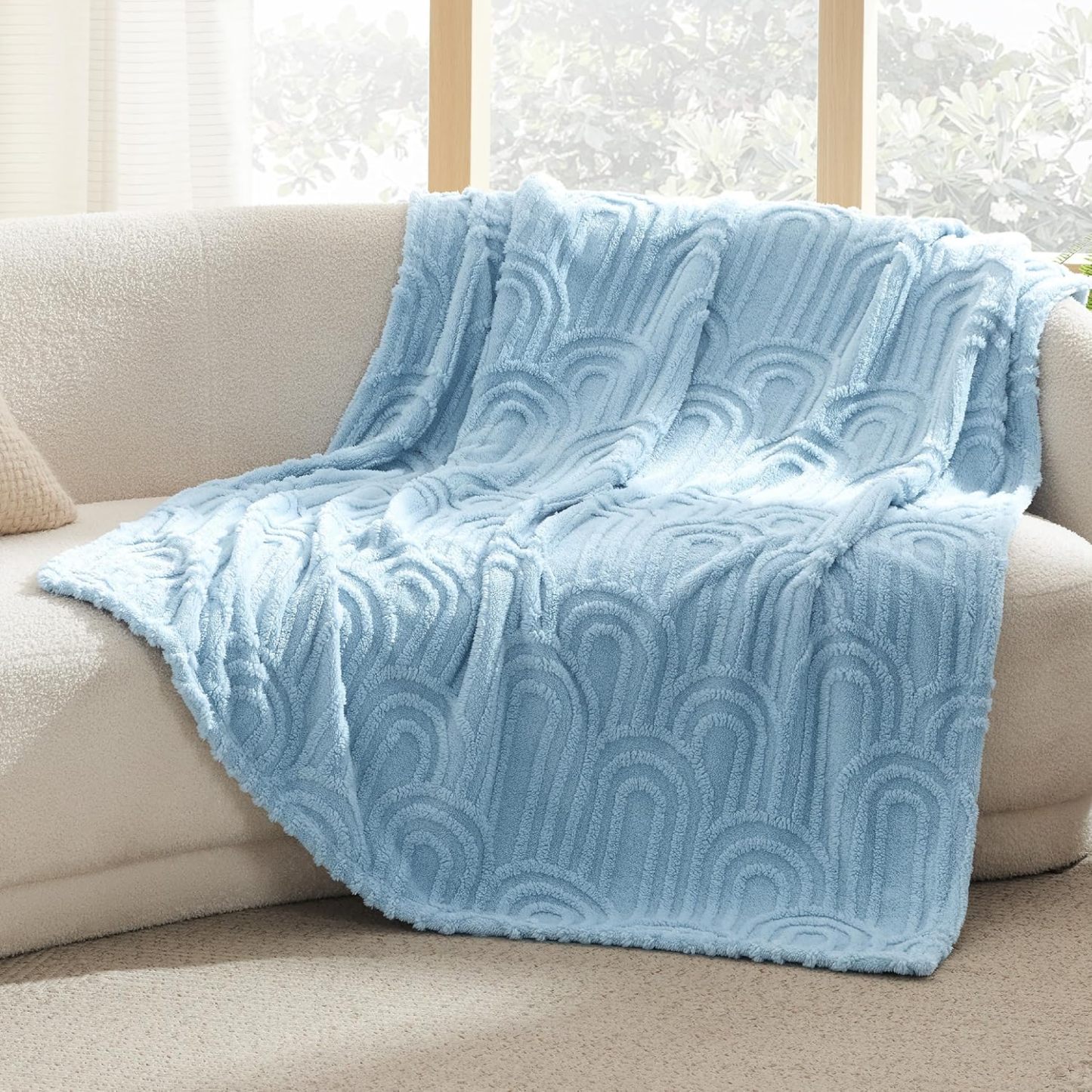 - Stylish & Reversible Softness: Designed with a thick layer of sherpa on one side and an elegantly designed jacquard pattern on the reversed side, this double-sided blanket is furry, plush, and ultra-cozy for stylish comfort all year round.