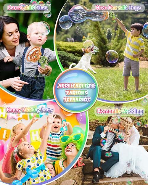 - 【Output More Stable Large Bubbles】:The equipped 10 packs of Bubble Concentrate can output bubbles for a period of time, and you don't have to worry about making a mess by submerging in the bubble water all the time. The motor is powerful and can guarantee the stable output of thousands of bubbles per minute.