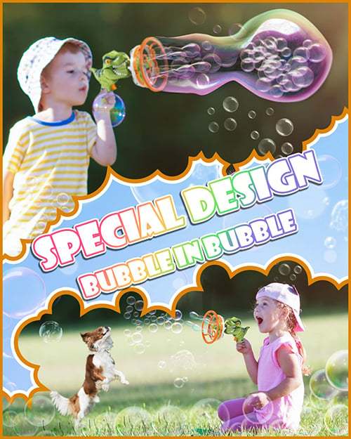 - 【Amazing Design- Bubble-in-Bubble】: The dino bubble machine will blow out a long-lasting big bubble and countless mini bubbles at the same time, children will be interested and enjoy this new type of bubbles.