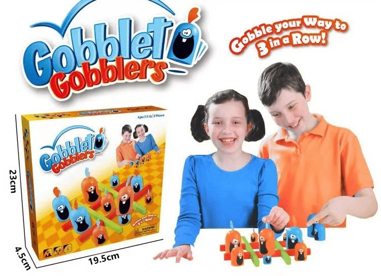 - Like tic-tac-toe, line up 3 of your Gobblers in a row to win!