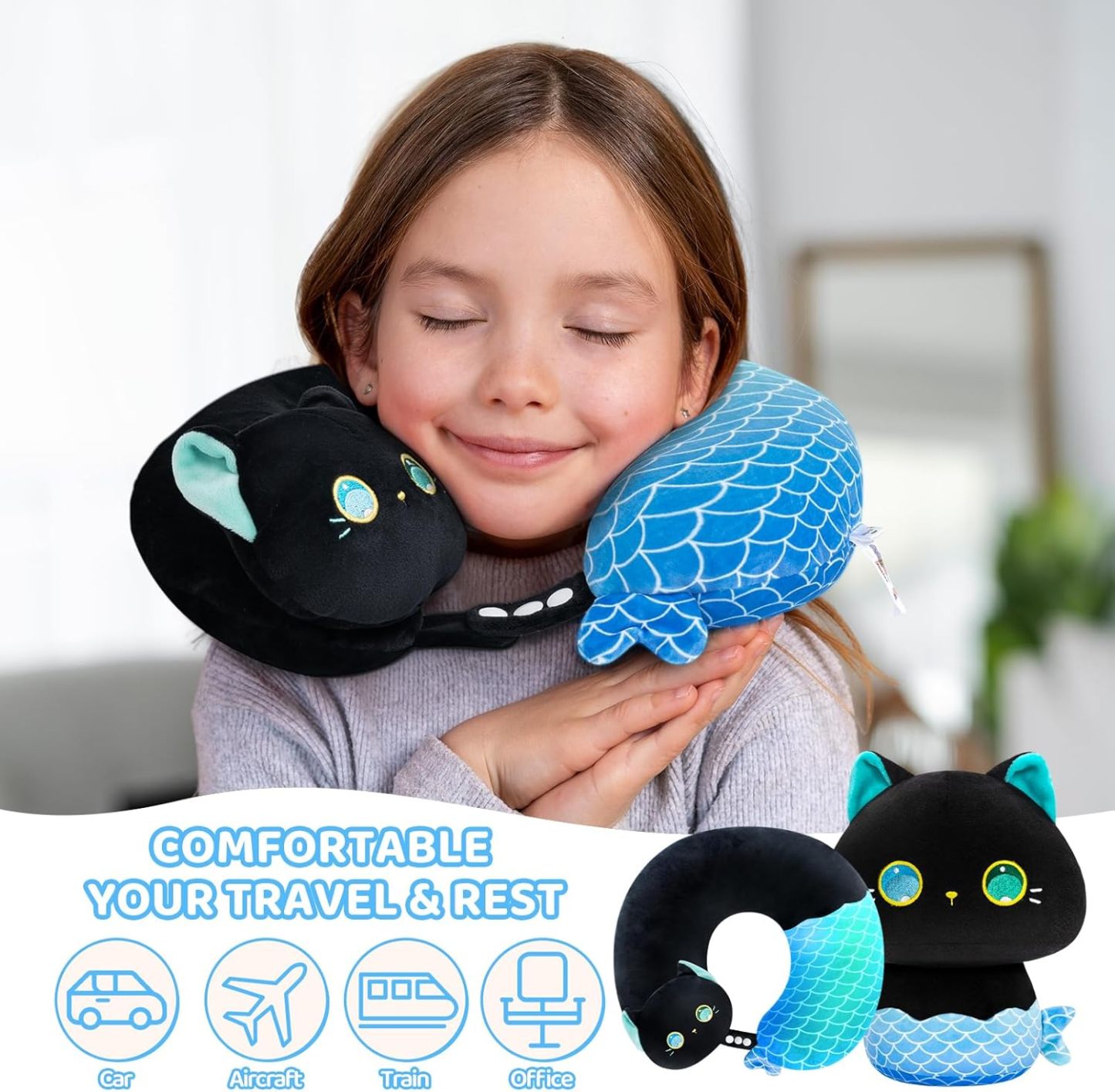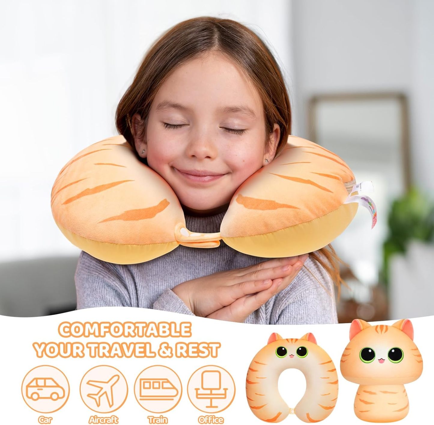 - Travel Supplies: This travel relaxing pillow is suitable for sleepy kids in the car. Super plump and soft touch, like being in the clouds. The ergonomic U-shaped design helps support kid's neck so they aren't hanging their head while napping, resting or doing homework. Never worry about cervical fatigue caused by sitting for a long time.
