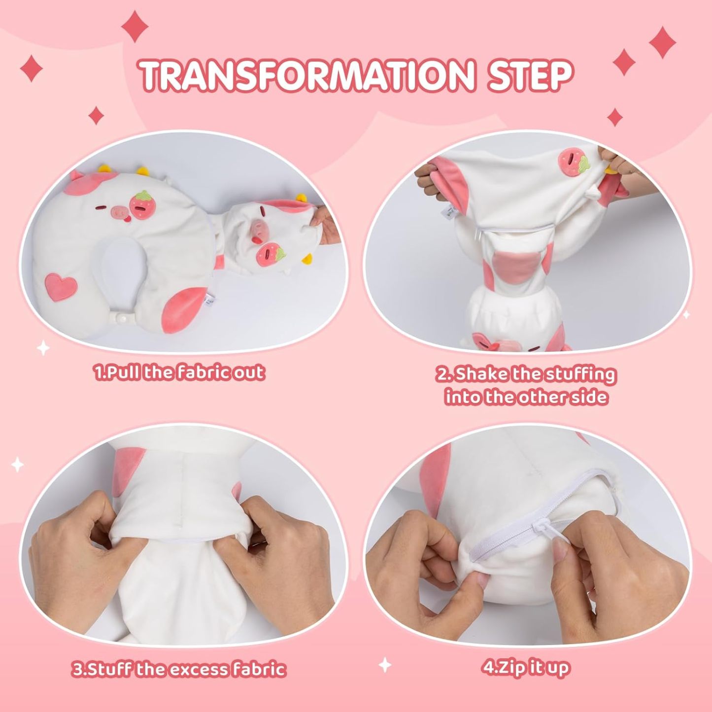 - Cute Cartoon Embroidery: Our strawberry cow reversible plush is perfect for your living room, bedroom, office, dining room, sofa, car. It's also a great plush toy for kids adding a touch of charm and comfort to their homes.