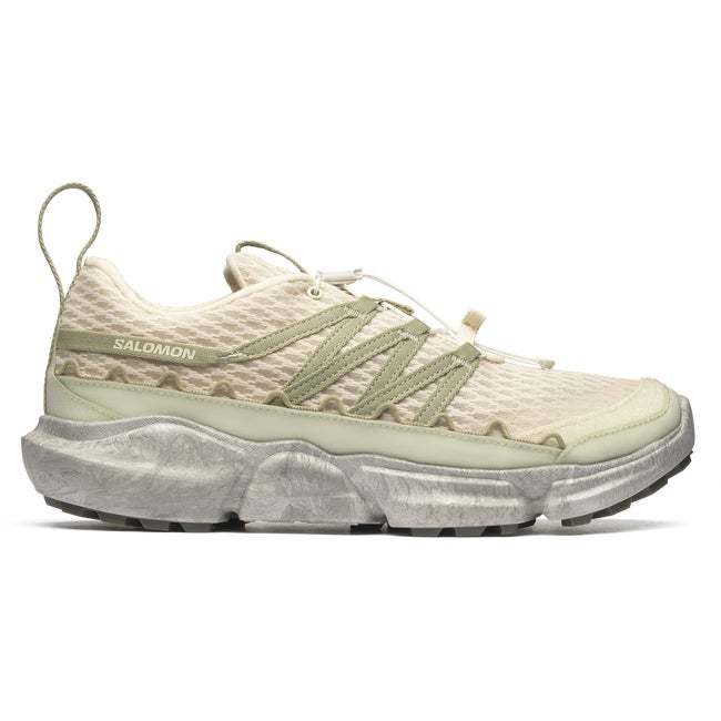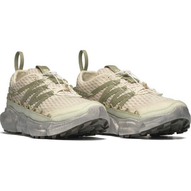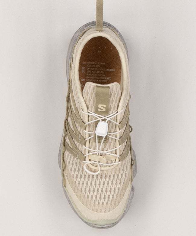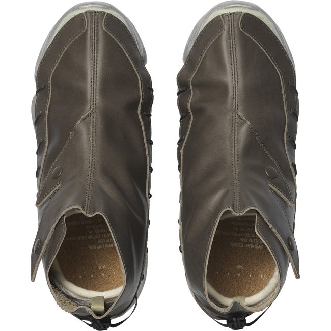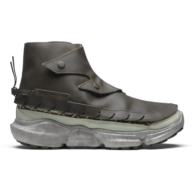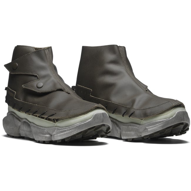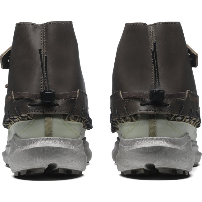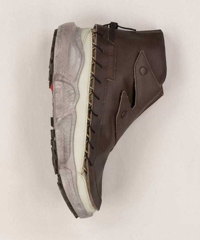 SKOR RANRA marks the third collaboration between RANRA and Salomon. Driven by an ever-present desire to promote product longevity in the footwear and fashion game, this shoe merges practical protection with real sustainability. Featuring an inner shoe and a bottom unit that can be both disassembled and recycled, and a unique removable leather gaiter.